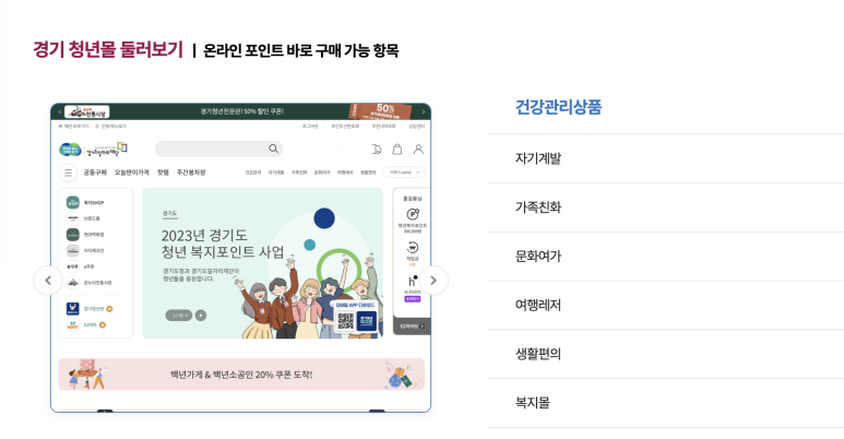 - 현금이 아닌 ‘경기청년몰’ 전용 포인트로 제공