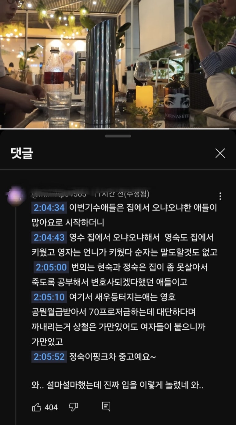분위기 전체가 조용해지며, 영식×현숙 현커를 위한 무대가 조성된 듯한 분위기였습니다.
