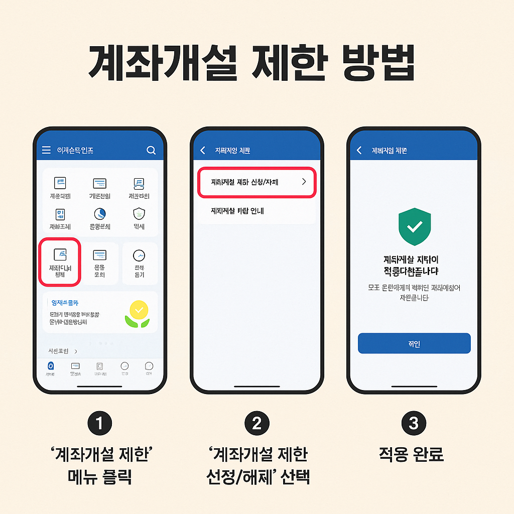 - 대출이나 카드 발급 시 제한될 수 있어 일시 해제 기능 활용 권장