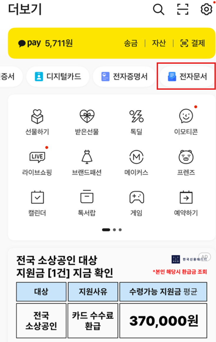 가장 많이 사용되는 방법은 카카오톡 전자문서 서비스입니다.