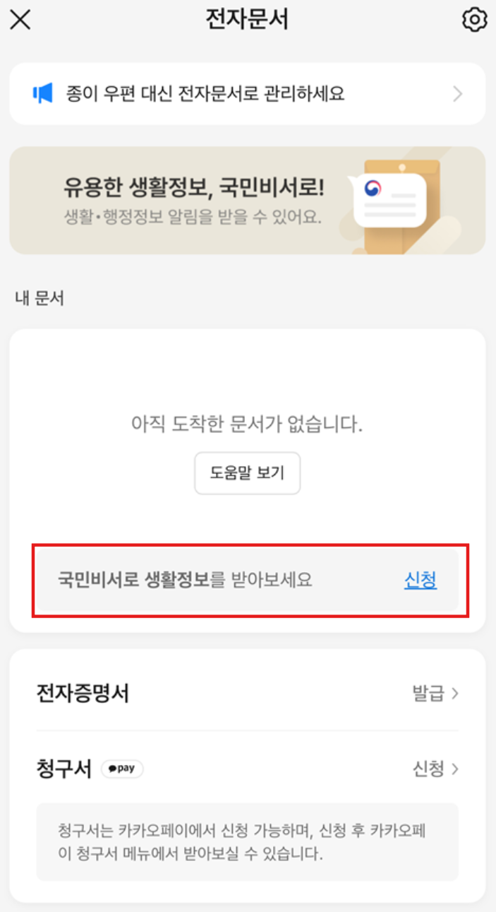 - ‘카카오톡으로 국민비서 알림 받기’ 클릭