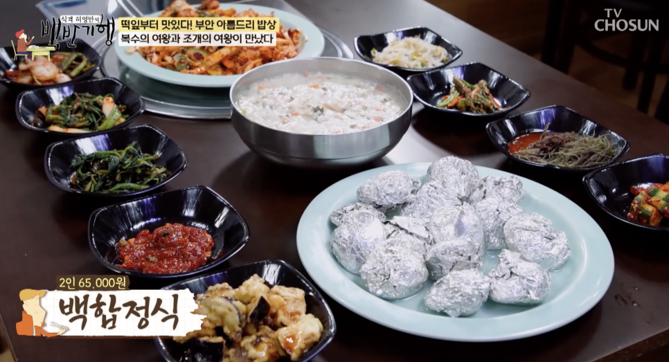 - 부안의 명물 백합을 죽, 찜, 탕 등 다양한 방식으로 즐길 수 있는 정식