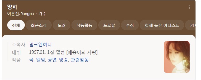 - 최근 활동: 간헐적 음반 발표, 방송 출연은 드물었으나 이번 복면가왕 앤틱거울로 전격 컴백