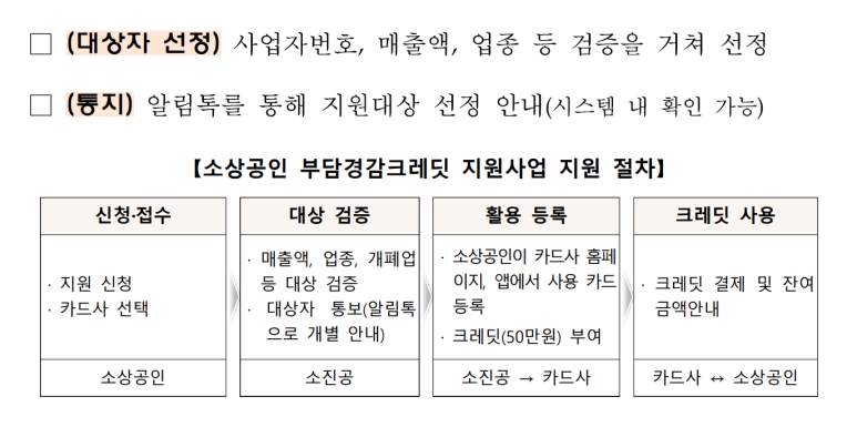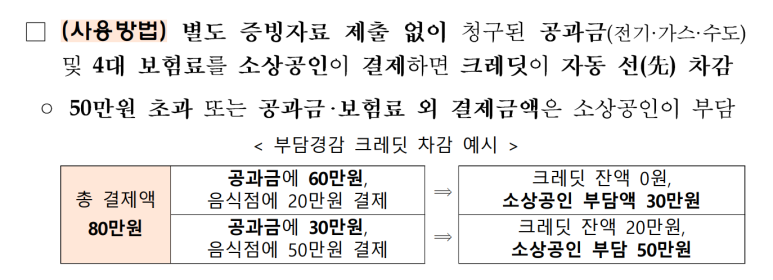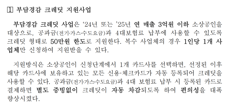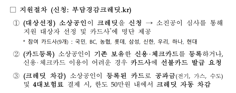 - 신청 방법: 부담경감크레딧.kr 또는 소상공인24