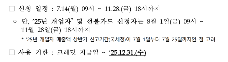 또한 2025년 신규 창업자는 8월 1일부터 신청 가능하며, 연 매출 3억원 이하 조건은 그대로 적용됩니다.