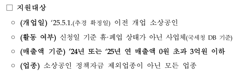 - 대상: 2024·2025 연 매출 3억 이하 소상공인