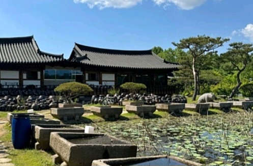 - 규모: 약 5,000평 규모, 전통 한옥 양식 + 연못 조경 + 광개토대왕릉비 레플리카 보유