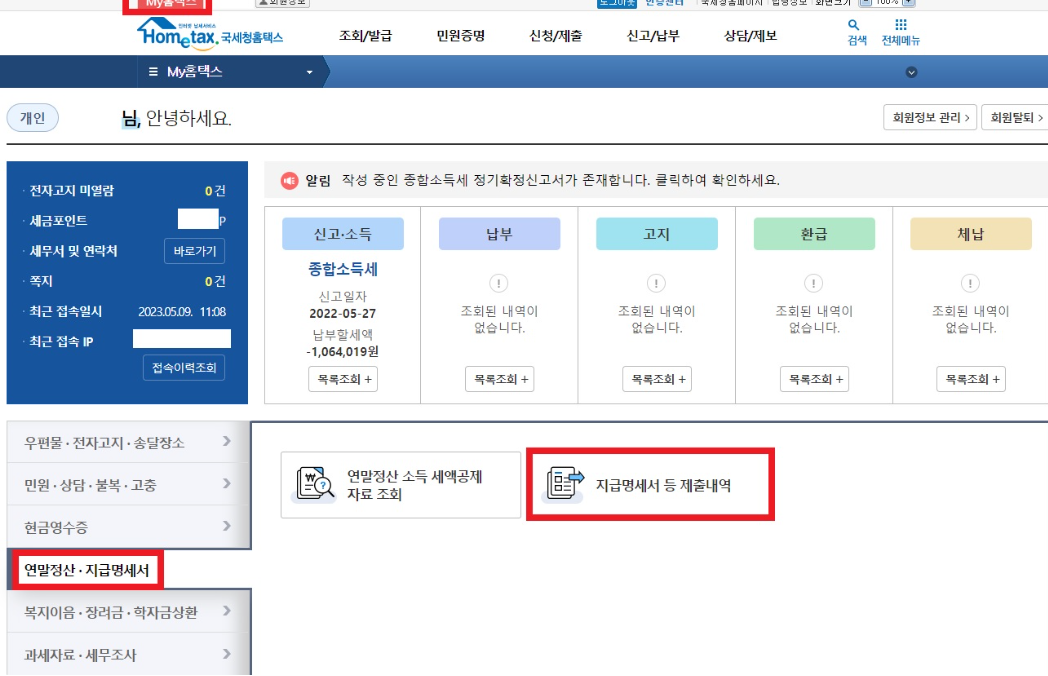 4. 종소세 신고 및 납부 절차 (홈택스 기준)