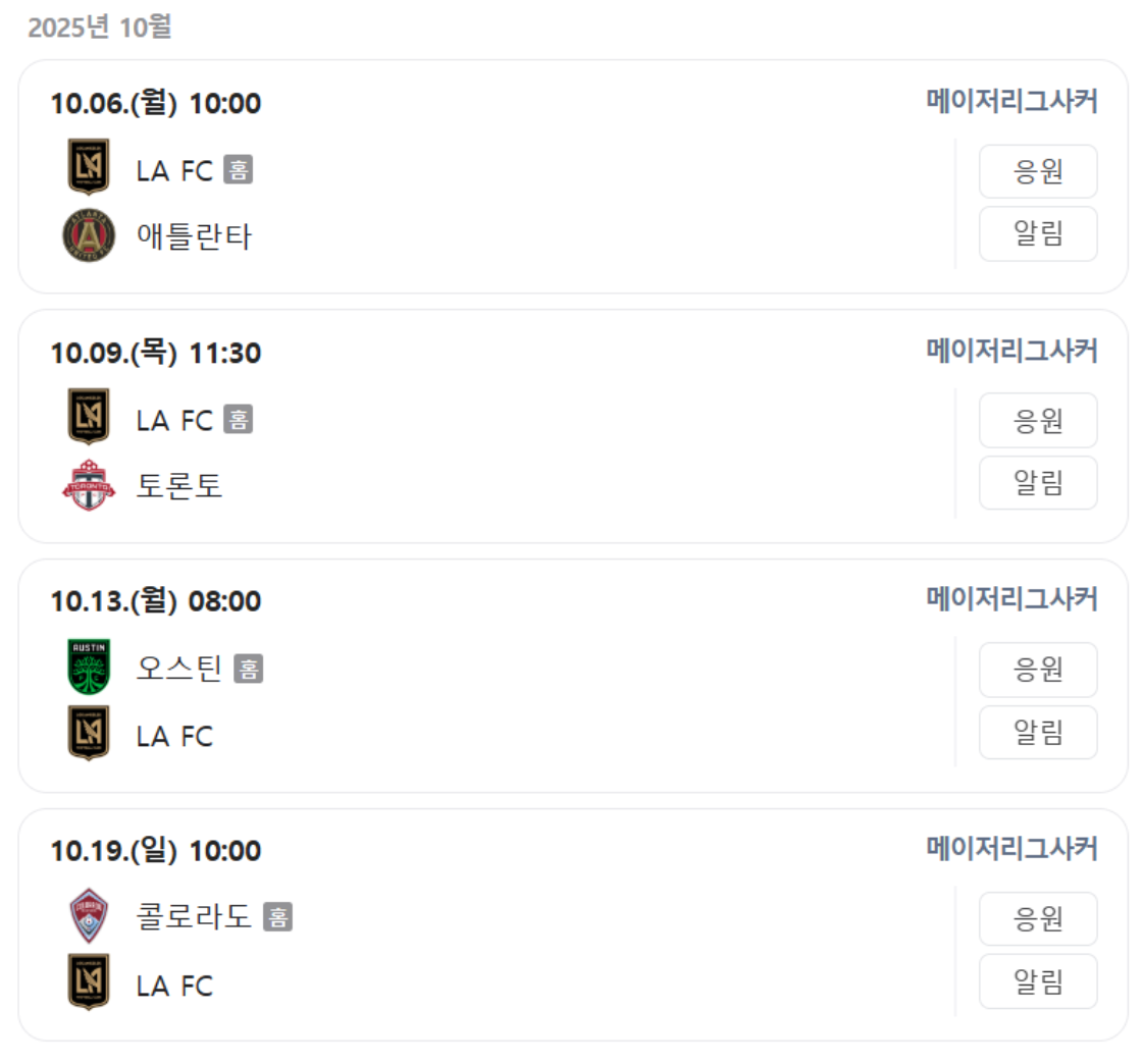 📅 LAFC 손흥민 10월 경기 일정 (한국 시간 기준)